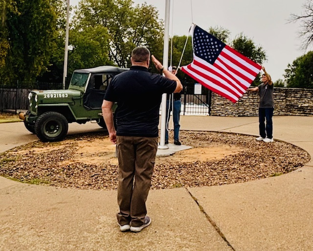 This past Saturday VFW Post 3279 sponsored a golf tournament to raise funds for local veterans and their programs. As part of that tournament the VFW post sponsored the installation of a new flag pole and conducted its first official flag raising ceremony. A plaque donated by Lynn Peterson was also presented and will be installed at the base of the flag pole in honor of our local veterans. Senior Vice Commander Bill Marshall presented Brian Slaughter the check prior to the flag raising. Sergeant at Arms Jim Theil and his wife Terry raised the flag while retired First Sergeant and Band Director from Bethany college Larry Dean performed the Star Spangled Banner for the ceremonial raising. A special thank you to all the sponsors who made this past event a success as well as all the teams who braved the difficult weather conditions to participate.